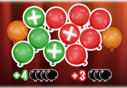 The most important thing in Balloon Buster 3 is the new plus balloons. If you use them optimally, you can go far and score a lot of points. Normally you always have a limited number of balloons in each lane, but the plus balloons let you get more. Every time you blow up a group of balloons that includes a plus balloon, you get new balloons equal to half the size of the group (rounded up). If you have two plus balloons in a group, you get as many new balloons as you have blown up. If you have more than two plus balloons in the group, it's even wilder: you get more new balloons than the ones you burst yourself.