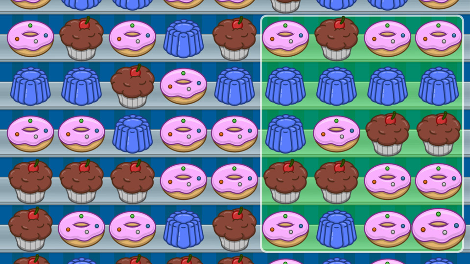 In Cookie Boost, the baker who loves to bake has already baked the classic cookies for you - so cookie recipes are not something you need to worry about. Your task is to find squares with the same cookie in each corner. You have one minute to find as many squares as possible. However, you earn bonus seconds along the way, so a round can easily take much longer.