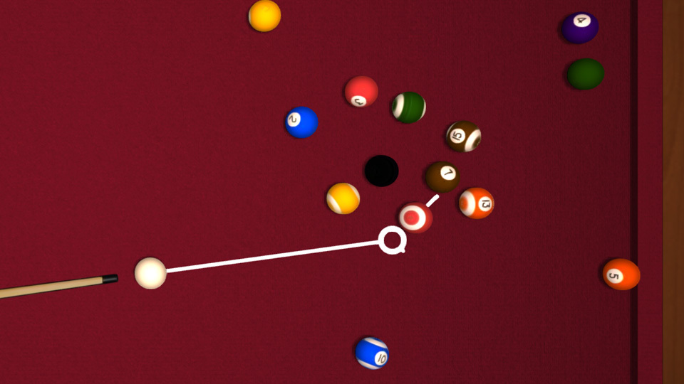 Moving the dot to the sides will make the cue ball curve gently — perfect for getting around balls that are in the way.