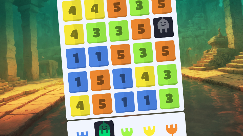 In this game type, you need to make connected groups of four or more identical pieces. Clicking on a tile increases its value by one, allowing you to make four neighboring tiles have the same value. The number of points you score corresponds to the numbers on the tiles. You lose when there are no more opportunities to form groups of four of a kind - but you get to use any power-ups first.