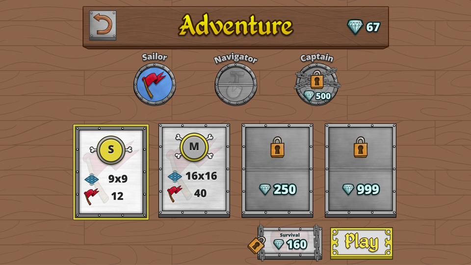 Game modesThere are three different game modes and an extra challenge to try out in Sea Sweeper: Sailor, Navigator and Captain, and Survival. |