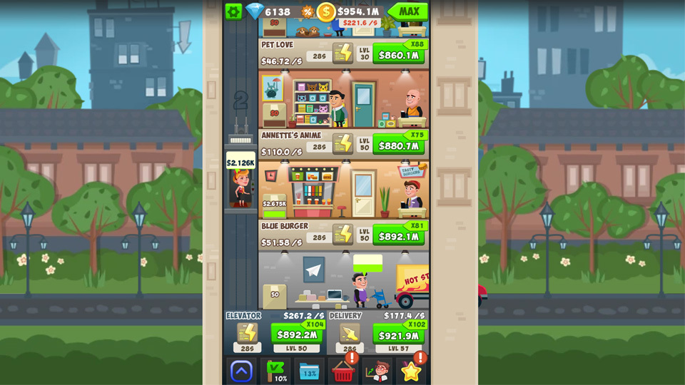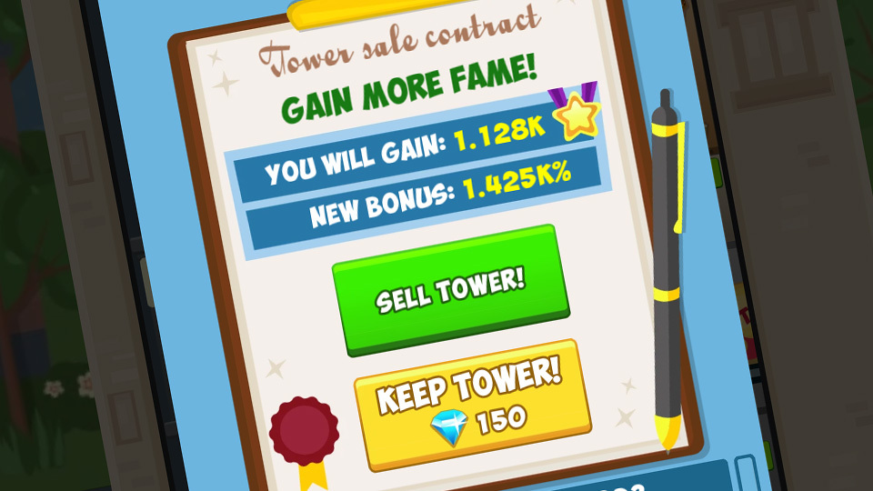 Managers do the trivial work for you, so you just have to concentrate on upgrading the right floors. In addition, managers allow you to activate a boost that will improve a floor for a limited time.